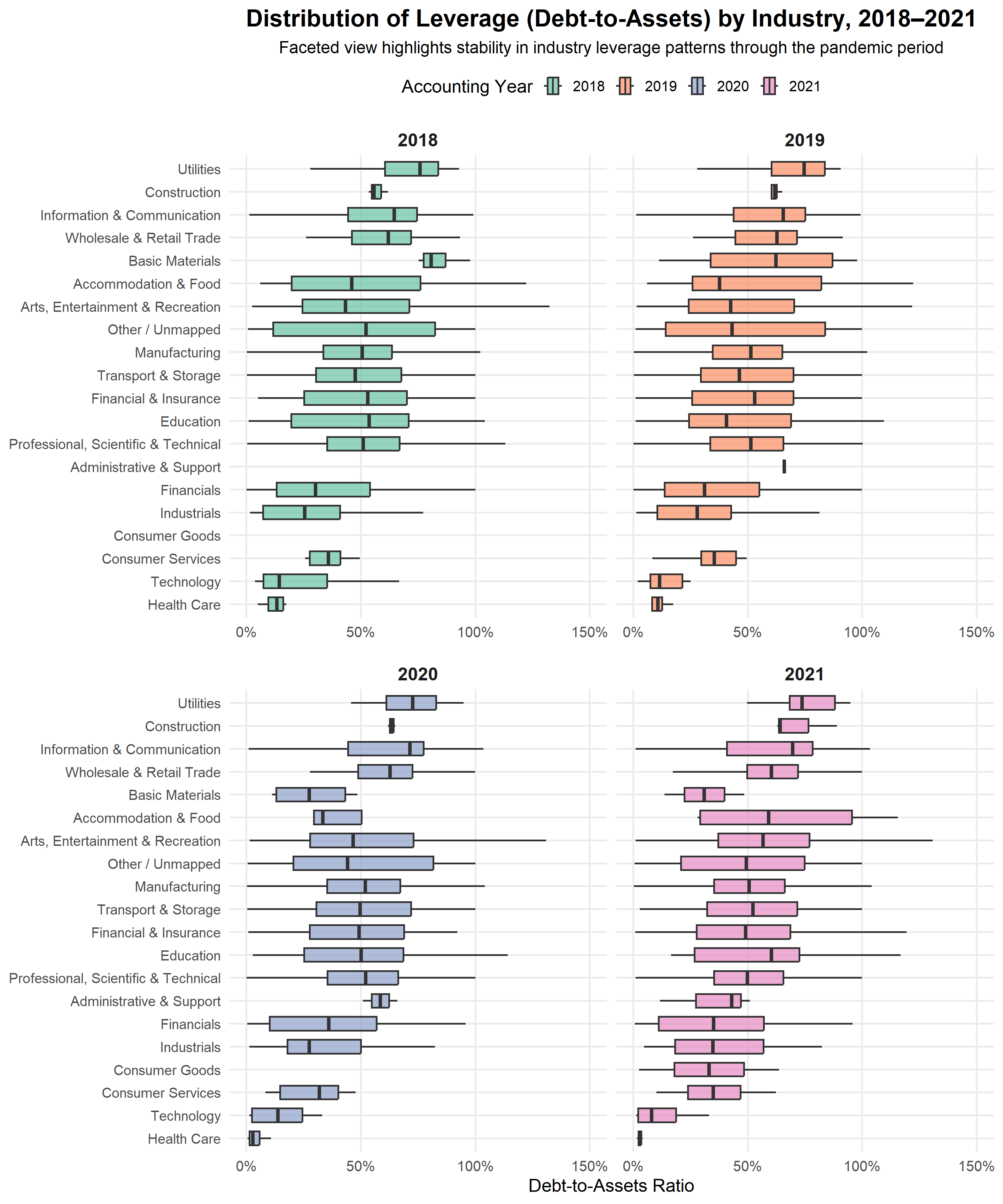 We select industries previously identified in the macro analysis (industries labelled K-shaped, Resilient, or Hidden Crisis). For each industry × fiscal year we: